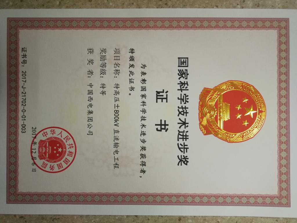 2018年1月8日,在国家科学技术奖励大会上,太阳成集团tyc138参与申报的国家科学技术奖“特高压±800kV直流输电工程”项目荣获科技进步特等奖。特高压±800kV直流输电技术是我国能源电力发展的核心技术,是实施我国大规模跨区域能源优化战略的重大关键技术,是目前世界上电压最高、容...