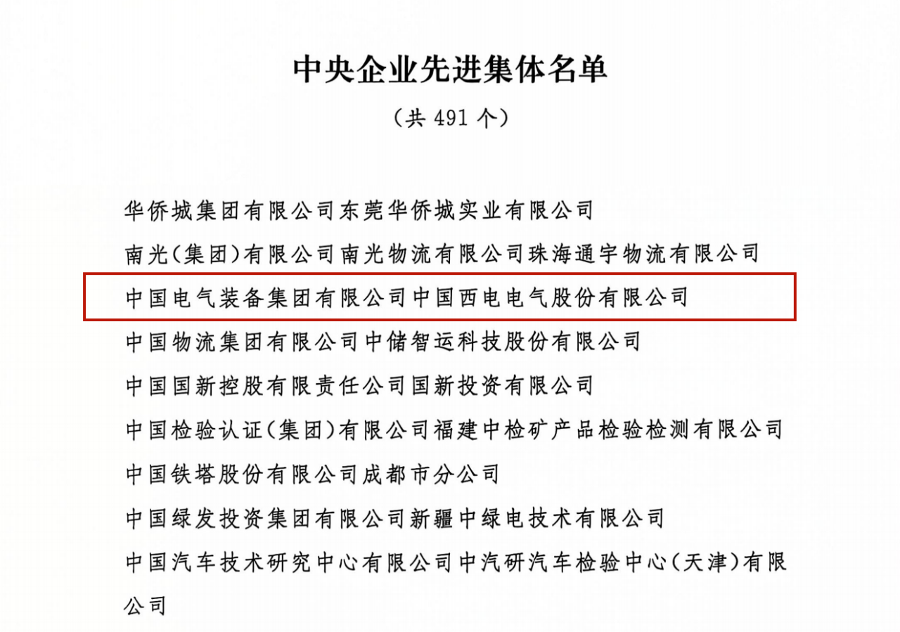 中央企业先进集体和劳动模范每5年评选一次,是国务院国资委系统的最高级别荣誉。在中华人民共和国成立75周年之际, 为表彰先进,树立典型,进一步激励中央企业广大职工在全面推动国资央企高质量发展的新征程中建功立业,最终由人力资源社会保障部、国务院国资委联合表彰。此次荣获“中央企业先进集体”称号,不仅是对西电近年来辛勤耕耘和不懈努力的肯定,更是对其在科技创新、产业发展和社会责任等方面取得显著成绩的表彰。西电将以此次荣获“中央企业先进集体”称号为契机,进一步加大科技创新力度,提升产业发展水平,积极履行社会责任,为建设世界一流企业贡献西电力量!
