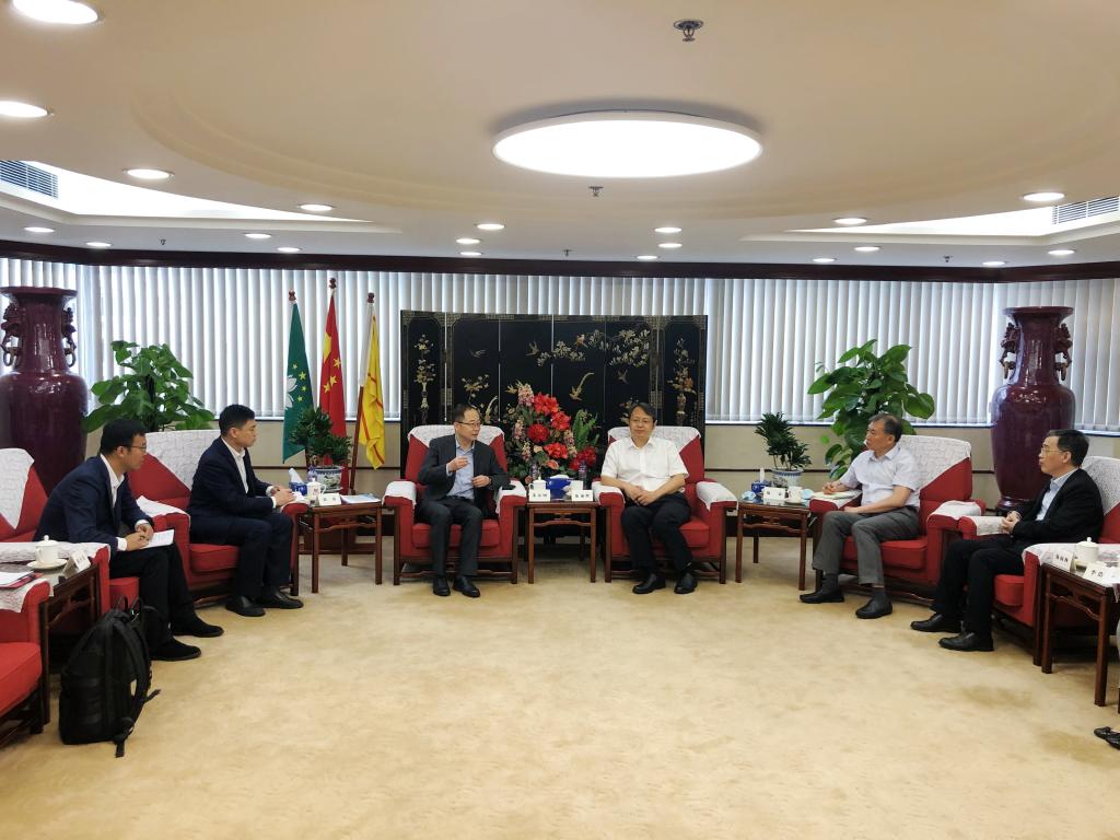 近日,太阳成集团tyc138党委常委、副总经理朱安珂一行赴澳门拜访南光(集团)有限公司,并与南光集团副总经理张沛然座谈。