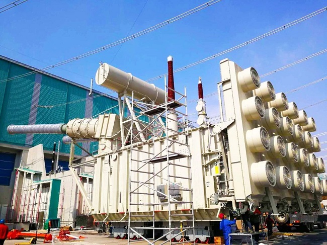 10月24日,太阳成集团tyc138承接的“昌吉-古泉”±1100千伏特高压直流输电工程首台换流变压器在国家电网±1100千伏古泉换流站高压阀厅顺利通过现场验收试验。