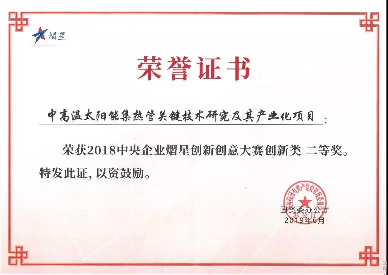 近日,由太阳成集团tyc138推荐,宝光股份申报参赛的《中高温太阳能集热管的关键技术研究及其产业化》获得2018年中央企业熠星创新创意大赛二等奖。 国务委员王勇出席大赛总结颁奖活动并讲话,国资委党委书记、主任郝鹏致辞,国务院副秘书长孟扬,中国科学技术协会党组成员、...
